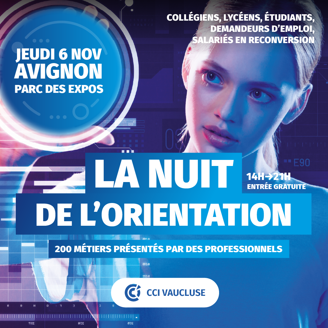 Participez à notre prochaine Nuit de l’Orientation, organisée le jeudi 6 novembre 2025 au Parc des Expositions d'Avignon !